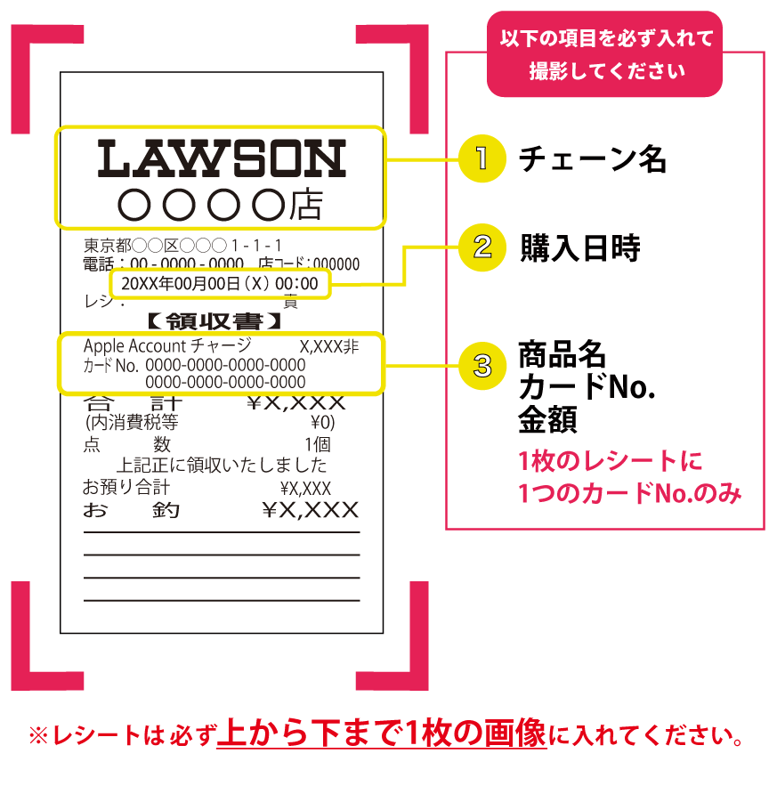 ※ご応募には、Apple Accountにチャージした際のレシートが必要です。レシートは破棄しないようご注意ください。