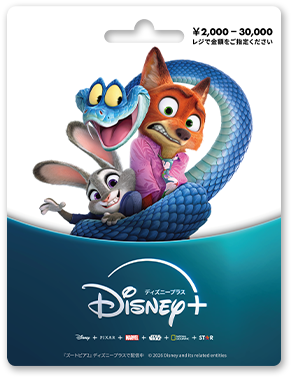 ・利用規約の全文は、https://disneyterms.com/jpdisneyplusgiftcardでご確認ください。利用規約は変更される場合があります。詳しくは、Disney+ヘルプセンターをご覧ください。Disney+利用規約が適用されます。