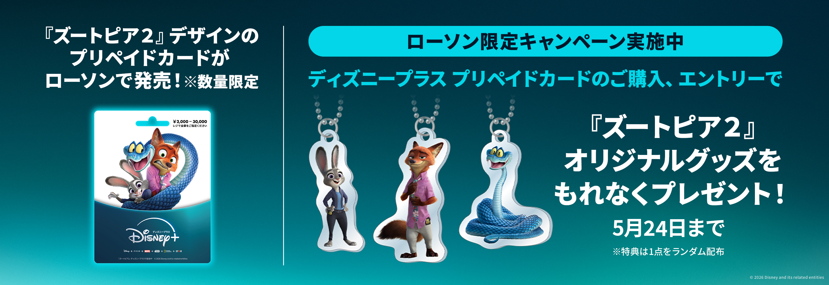 4月21日(火)より、ローソン各店舗にて『ズートピア2』デザインのディズニープラス プリペイドカードが数量限定発売!