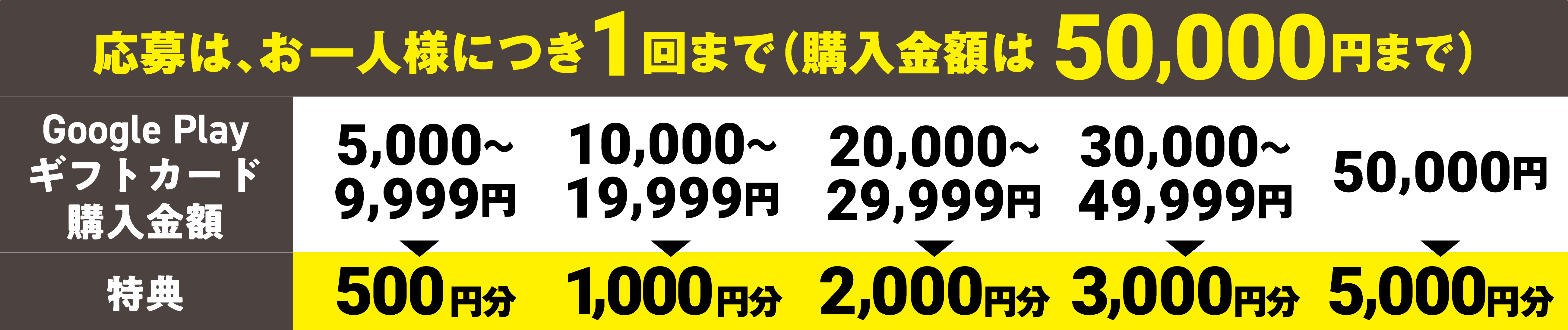 Google Play ギフトカードの購入金額に応じたGoogle Play ギフトコードを後日プレゼント!
