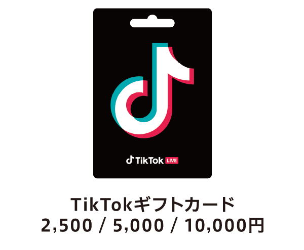 • 対象店舗以外で購入されたTikTokギフトカード 2,500円 / 5,000円 / 10,000円は対象となりません。